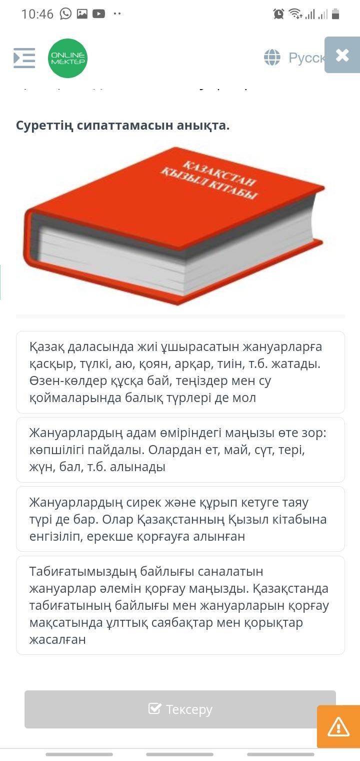 дұрыс жауабы 3 болуы керек.Себебі, суретте Қызыл китап берилген, ал бұл кітапка жойылу каупі бар осімдіктер мен жануарлар енгізіледі.