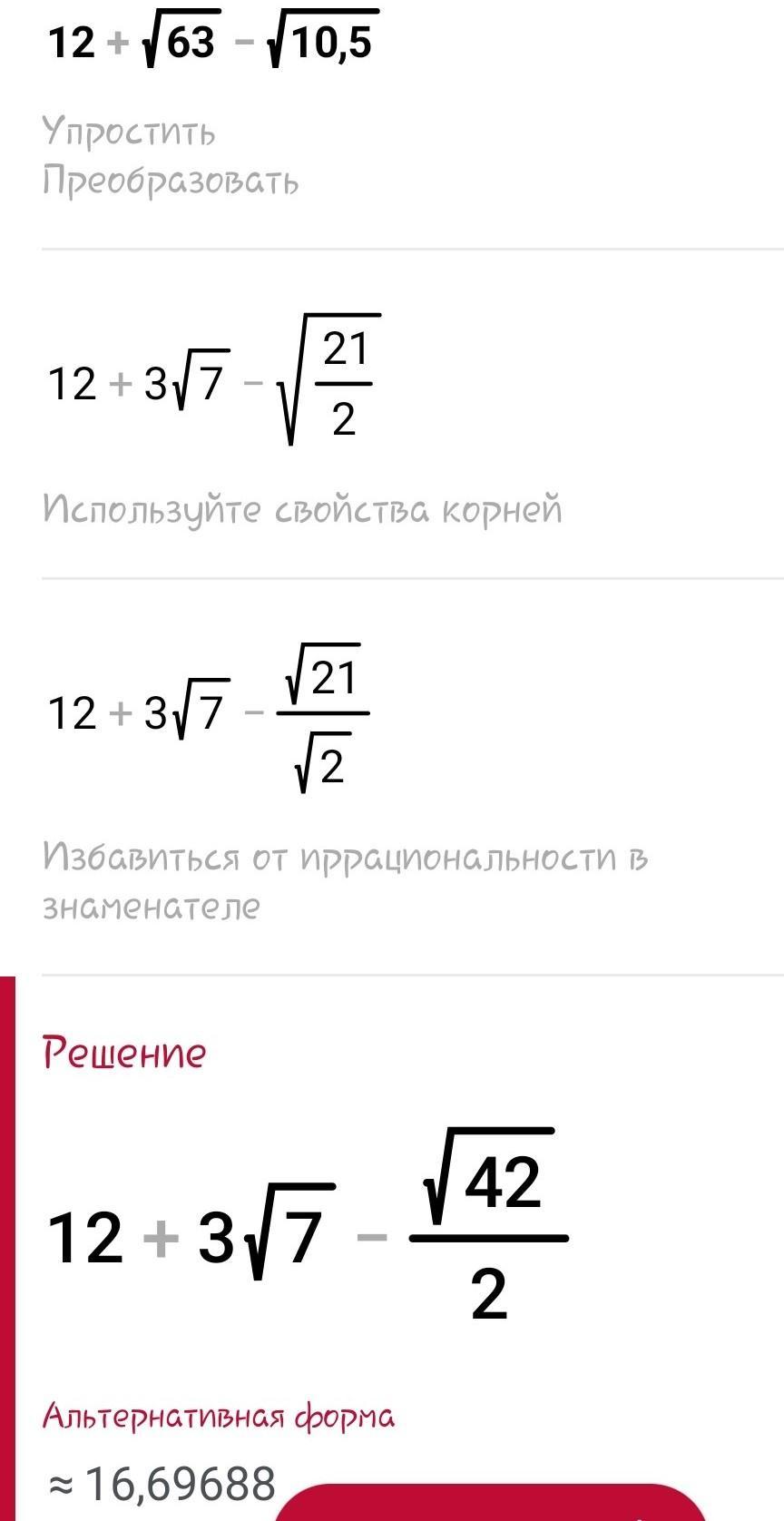1) 12 + корень 63 - корень 10,5 .2) корень 28-10 корень 3 + корень 28+10 корень 3;