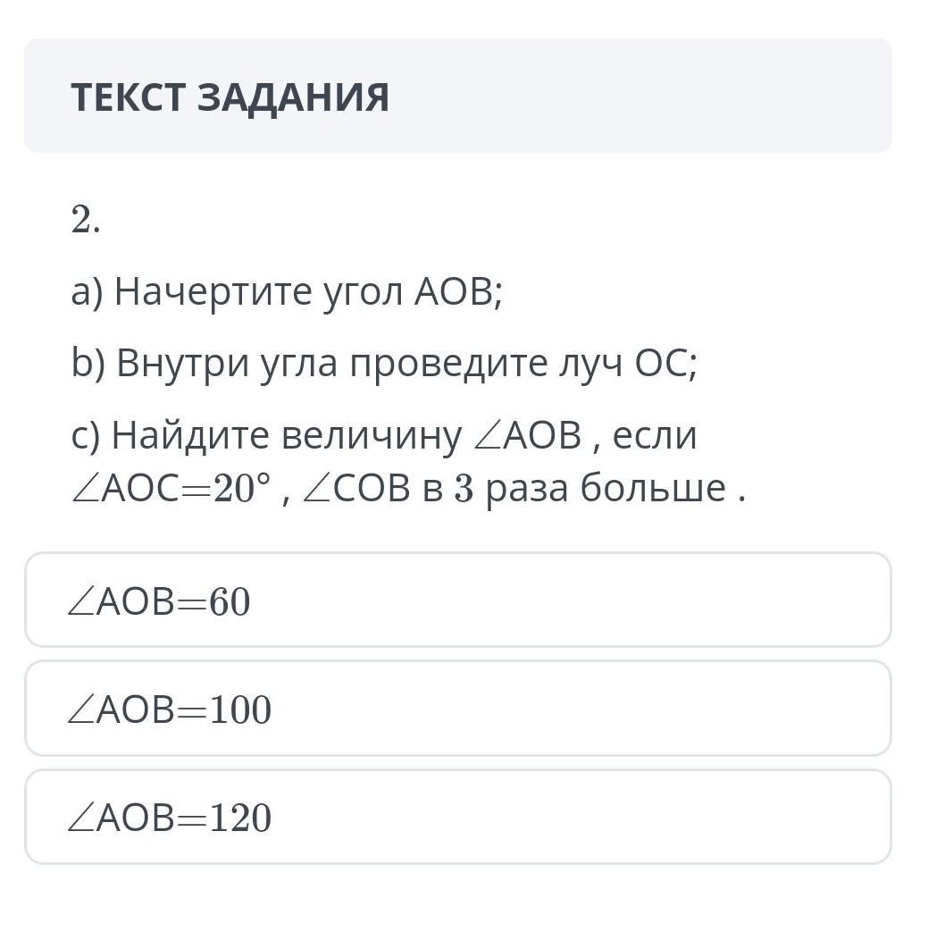c) Найдите величину ∠АOВ , если ∠АOС=20° , ∠СOB в 3 раза больше .