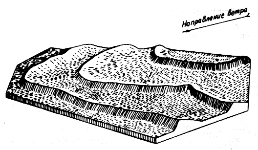Работа ветра относится к группе динамических геологических процессов.Процессы работы ветра,накопленные ветром отложения и созданные ветром формы рельефа называются эоловыми.К ним относятся барханы, песчаные гряды,дюны, и др.
