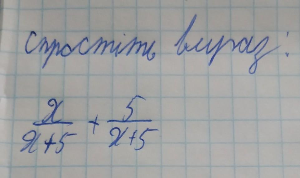 Решение: х/х+5 + 5/х+5 = (х+5)/(х+5)=1