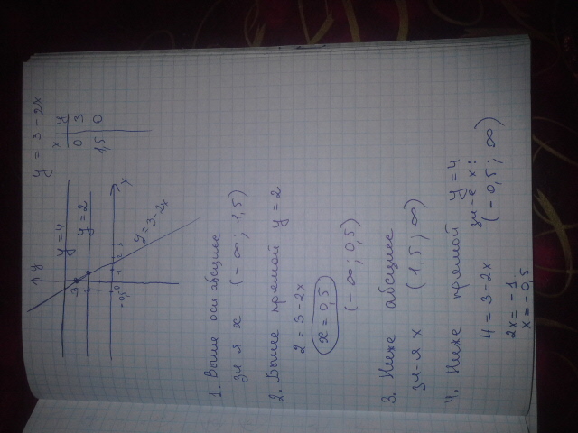 Построить график функции у=3-2х. С помощью графика найти значения х, при которых точки графика лежат: