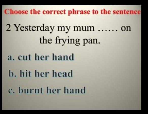 Yesterday my mum burnt her hand on the frying pan- Вчера моя мама обожгла руку на сковороде