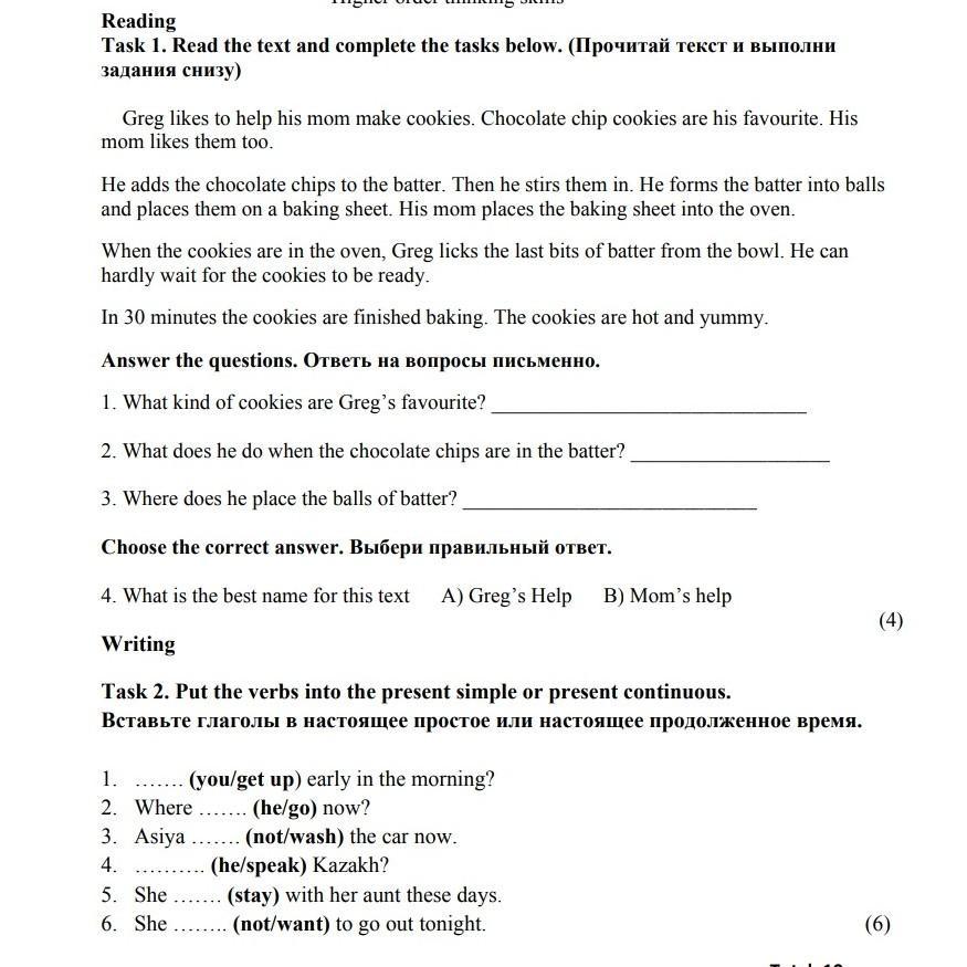 1. Greg's favourite kind of cookies is chocolate chip cookies.