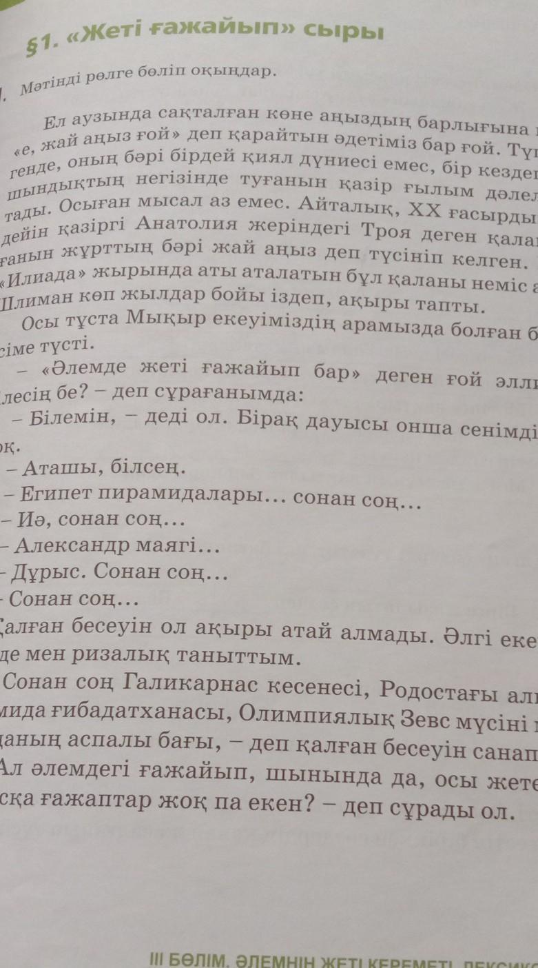 Әңгімеде адамдардың шындыққа сенбеуі.Сосын ол жерде әлем нің жеті кереметі жайлы айтылған