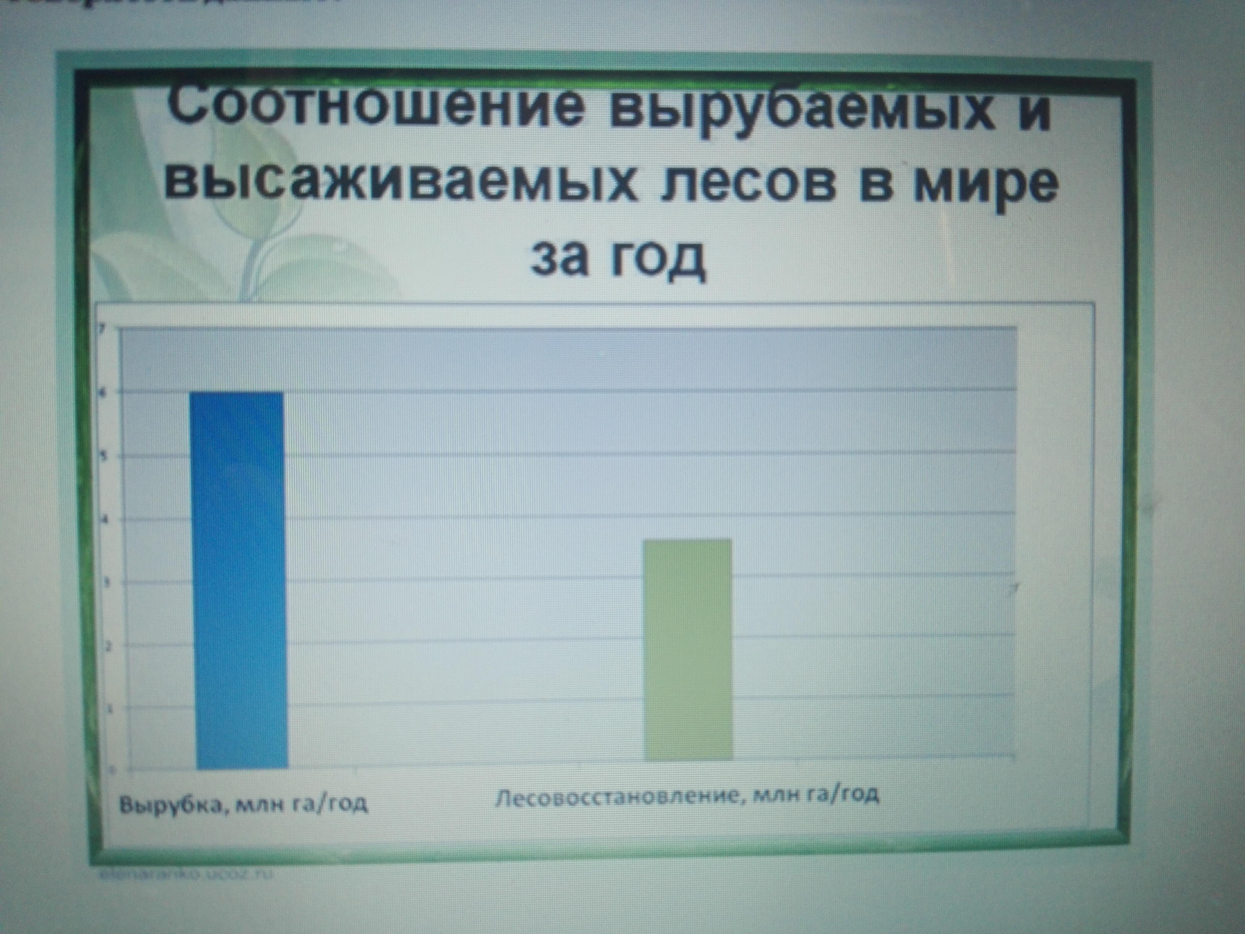 Происходит горазно больше вырубки лесов, чем лесопосадки. Таким образом можно сделать вывод, что если вырубка лесов будет производиться такими же масштабами, то вскоре лесов вовсе не останется
