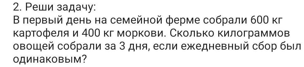 1000 кг * 3 дня = 3000 кг овощей (собрали за 3 дня)