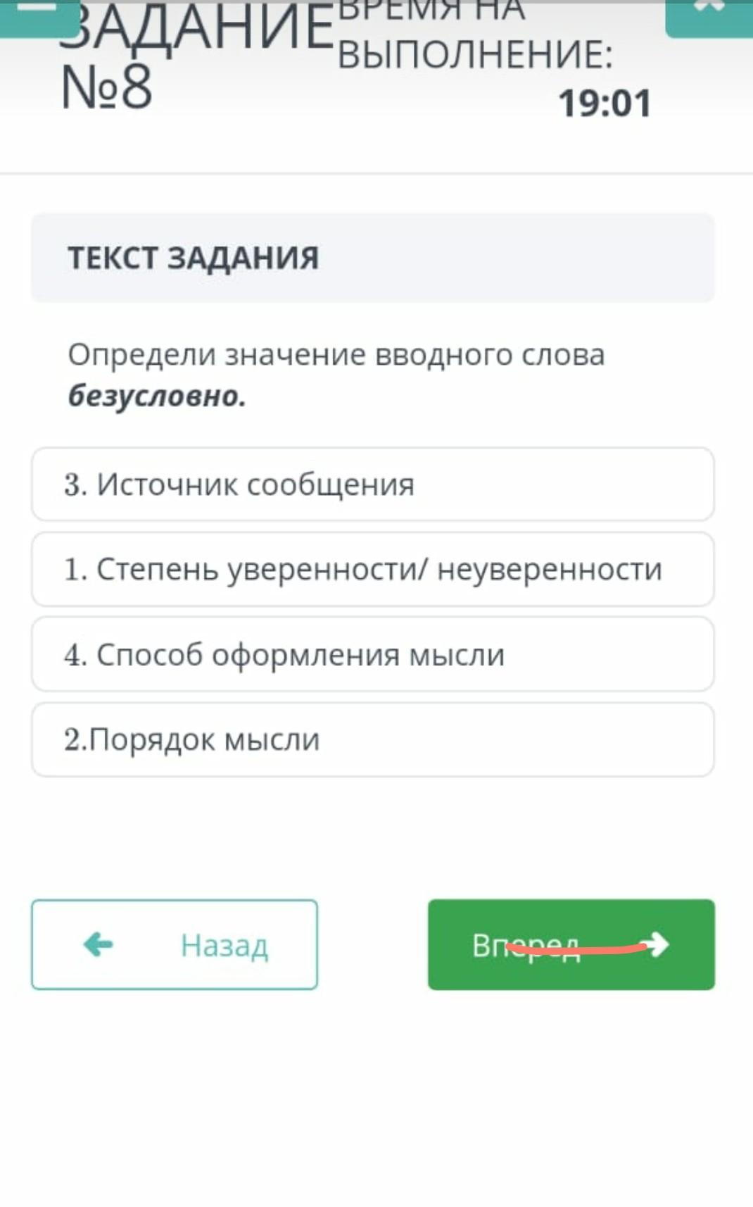 Ответ: степень уверенности/неуверенности