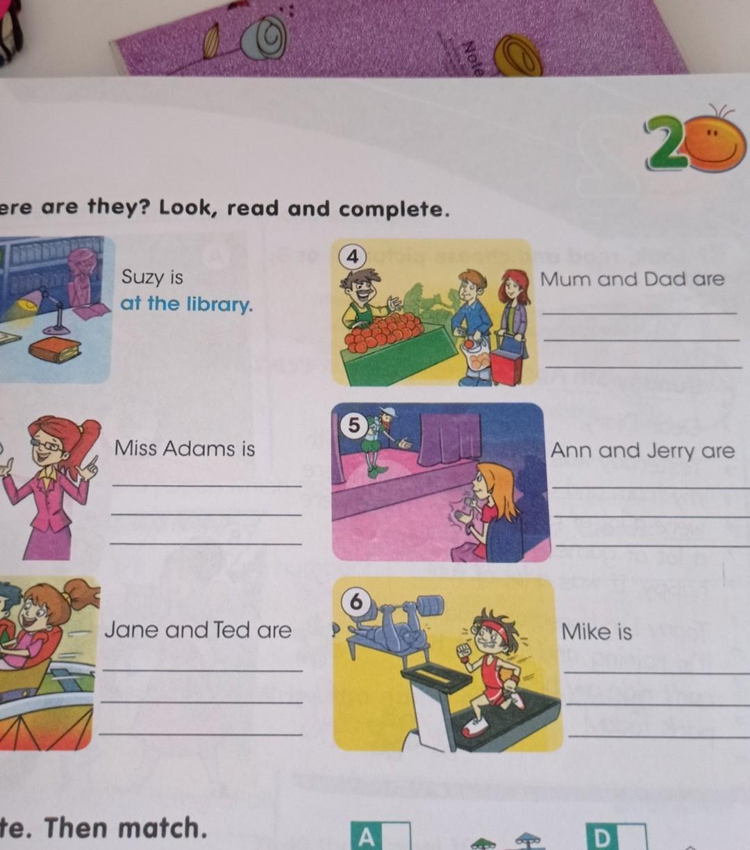 8 Where are they? Look, read and complete.