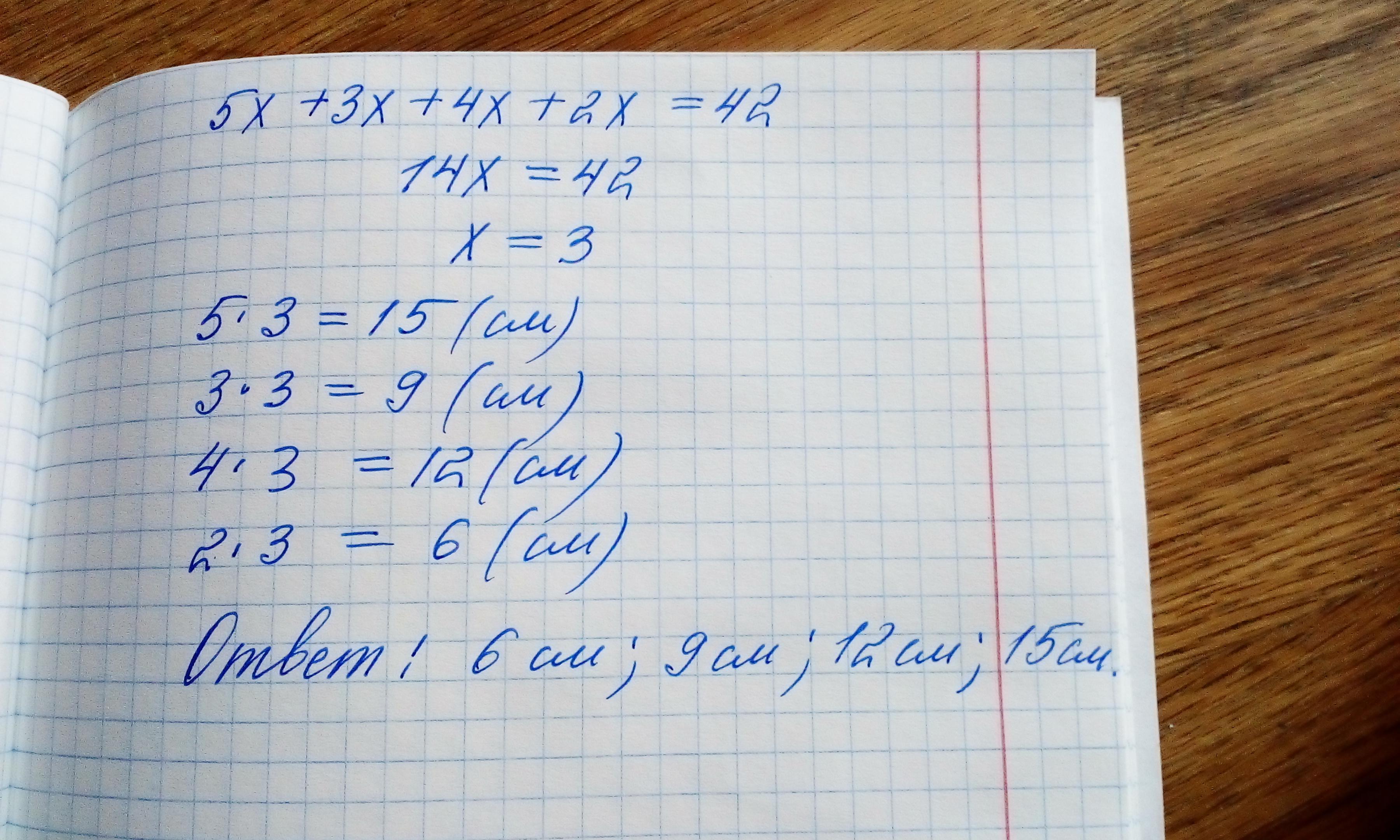 14х=42; х=3, итак, 5·3=15(см),3·3=9(см),4·3=12(см),2·3=6(см)--стороны трапеции