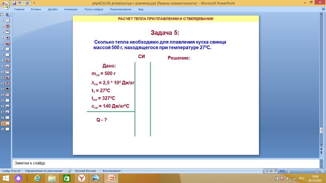 Сколько энергии израсходавано для плавления куска свинца массой 500 г.,взятого при t=27?