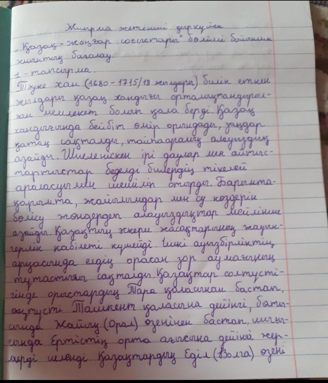 Тапсырма «XVII-XVIII ғасырлардағы қазақ хадығының ішкі жағдайы» тақырыбында 100-150 сөзден тұратын эссе жазыңыз. Эссе критерийлері: Қазақ хандығының ішкі саяси жағдайы туралы кемінде 3 дерек келтіру; Жоңғар шапқыншылығына қарсы күресте халықтың бірігуіне әсер еткен 3 оқиғаны жазу; Қазақ хандығының дамуына үлес қосқан хандардың іс-әрекеттеріне баға беру; помогите пж