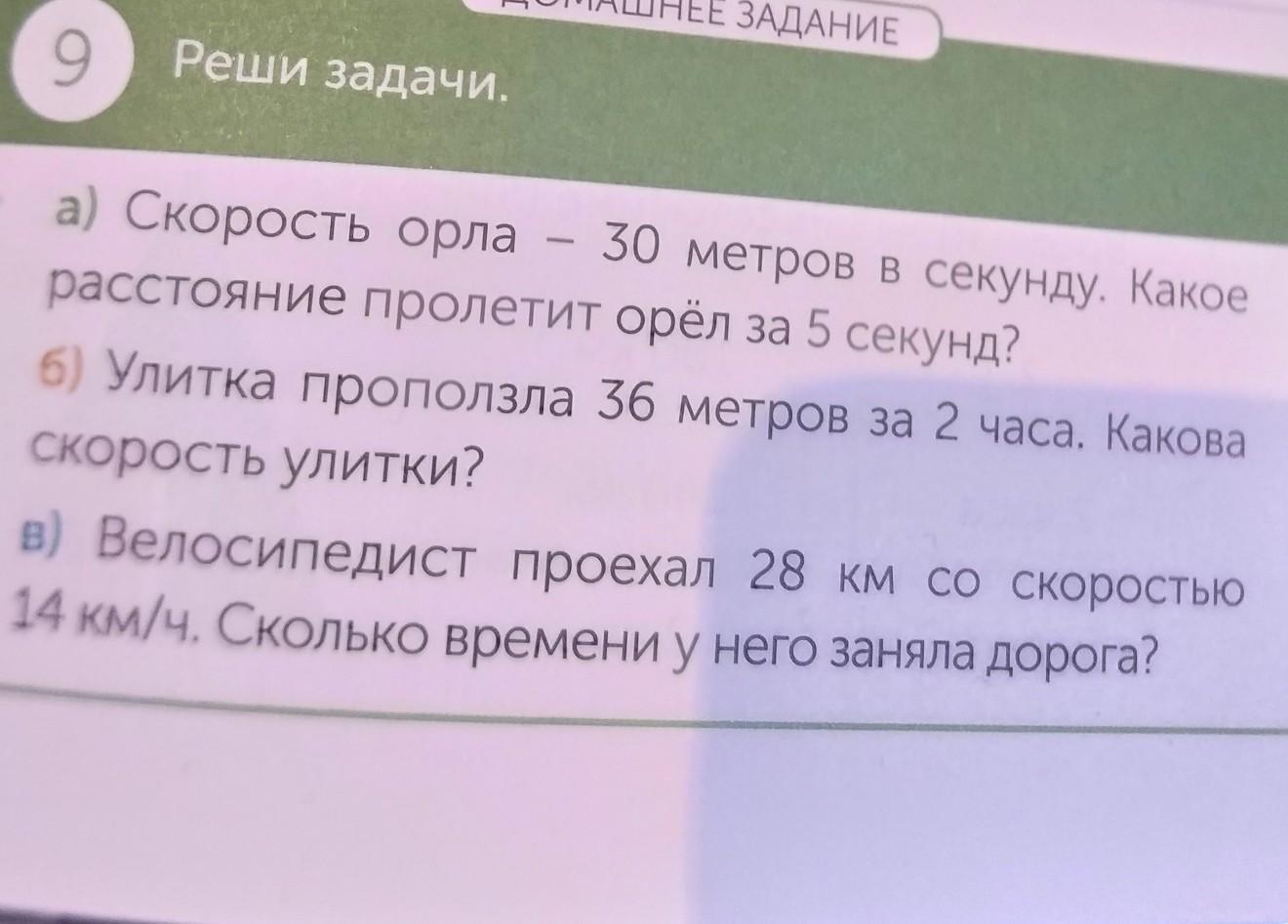 б) Улитка проползла 36 метров за 2 часа. Какова