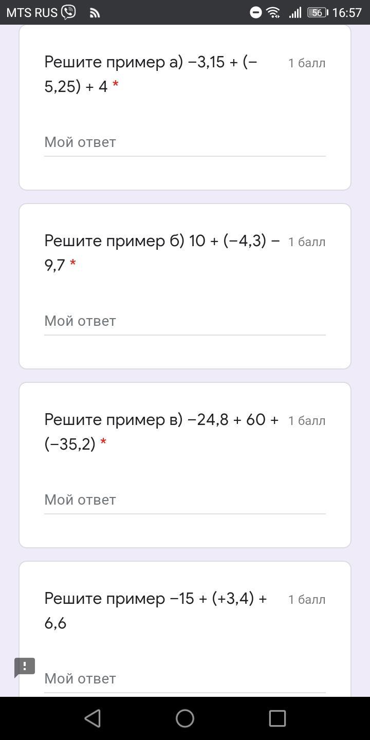 г) -15+(+3,4)+6,6 = -15+3,4+6,6 = -15+10 = -5