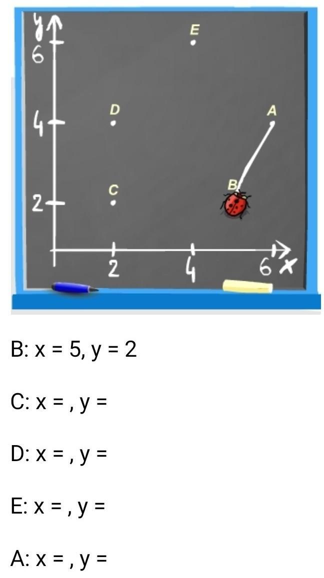 Божья коровка ползает по различным точкам отмеченным на доске Установите их координаты, Пожалуйста помогите!