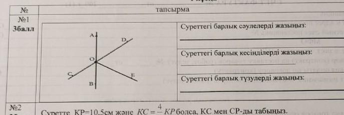 Суреттегі барлық сәулелерді жазыңыз:N,R,P