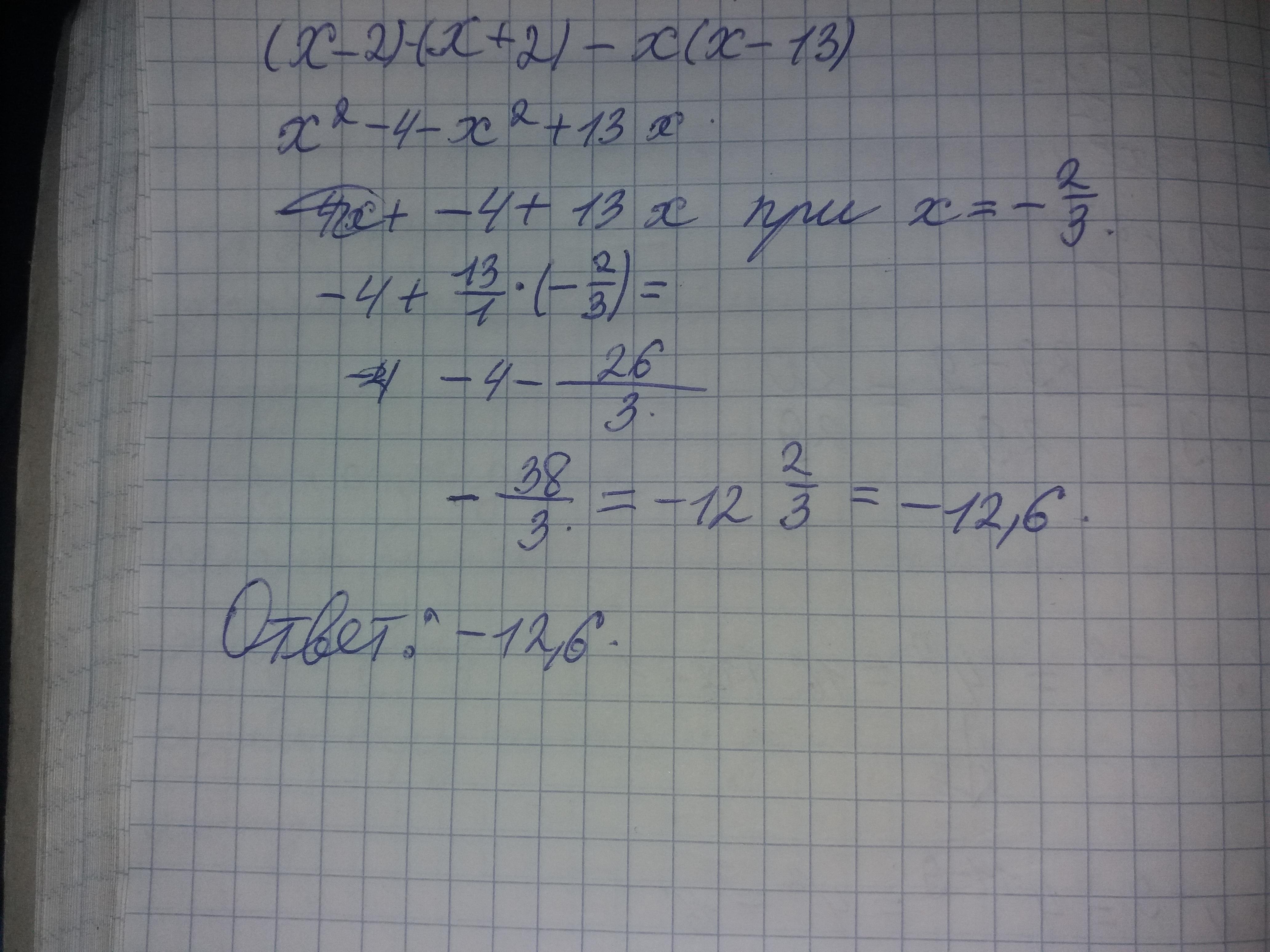 (x-2)(x+2)-x(x-13) = x²-4-x²+13x = -4+13x = -4-13*(2/3) = -38/3 = -12 2/3