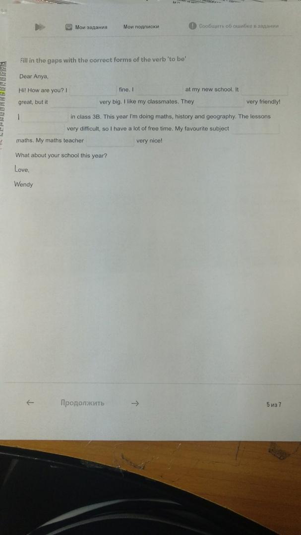 I am, I am, it is, it is, They are, I am, The lessons (they) aren't, my favorite subject (it) is, my teacher (he/she) is.