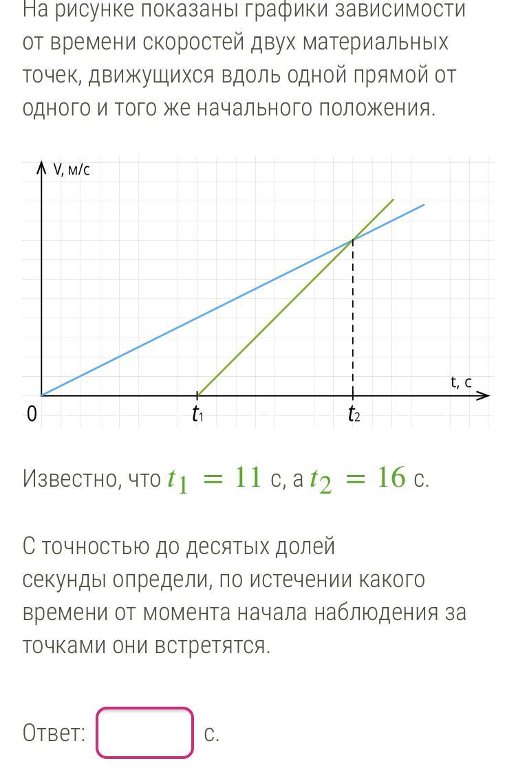 t2-t1=16-11=5секунд-время через которое они встречаются.