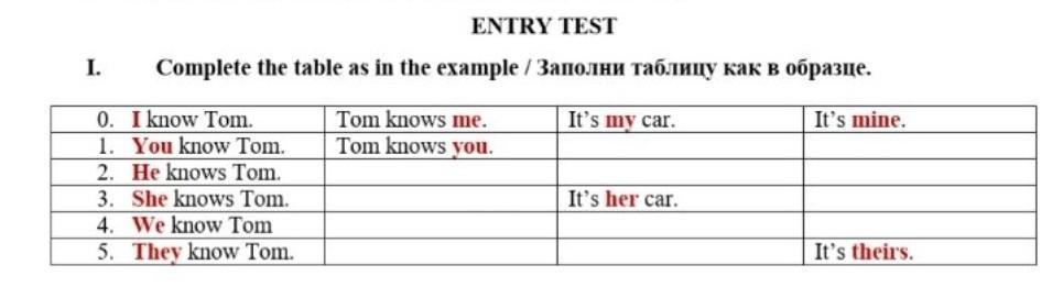 2.Tom knows him . It’s his car. It’s his.