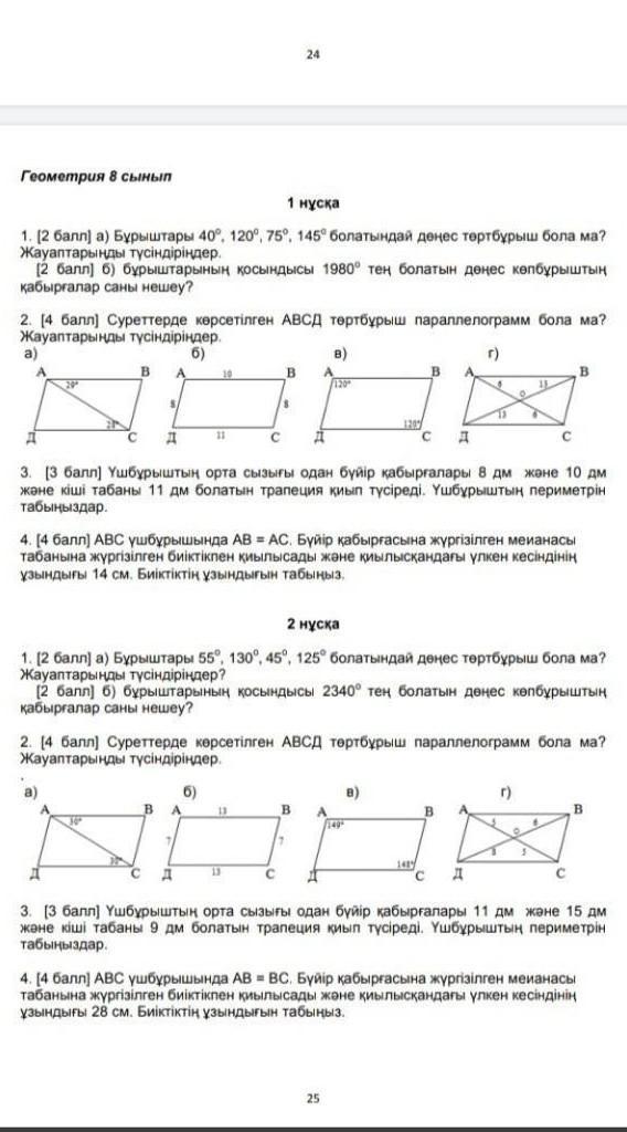 1. Жоқ, себебі төрбұрыштың бұрыштарының суммасы 360° тең болу керек