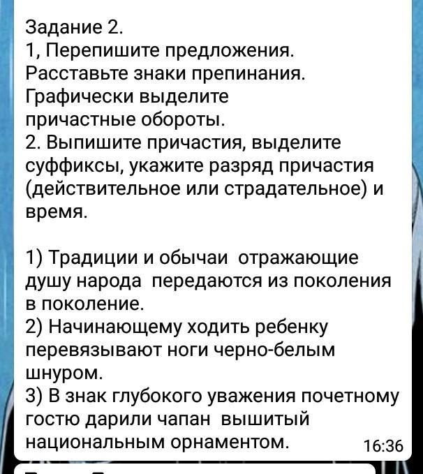 3.В знак глубокого уважения почетному гостю дарили чапан, [вышитый национальным орнаментом].-(страд.прич. прош. времени)