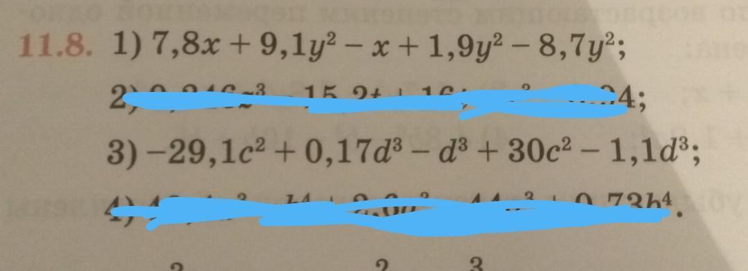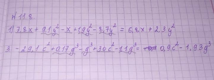 11.8. 1) 7,8x+9,1у^2-х+1,9у^2-8,7у^2