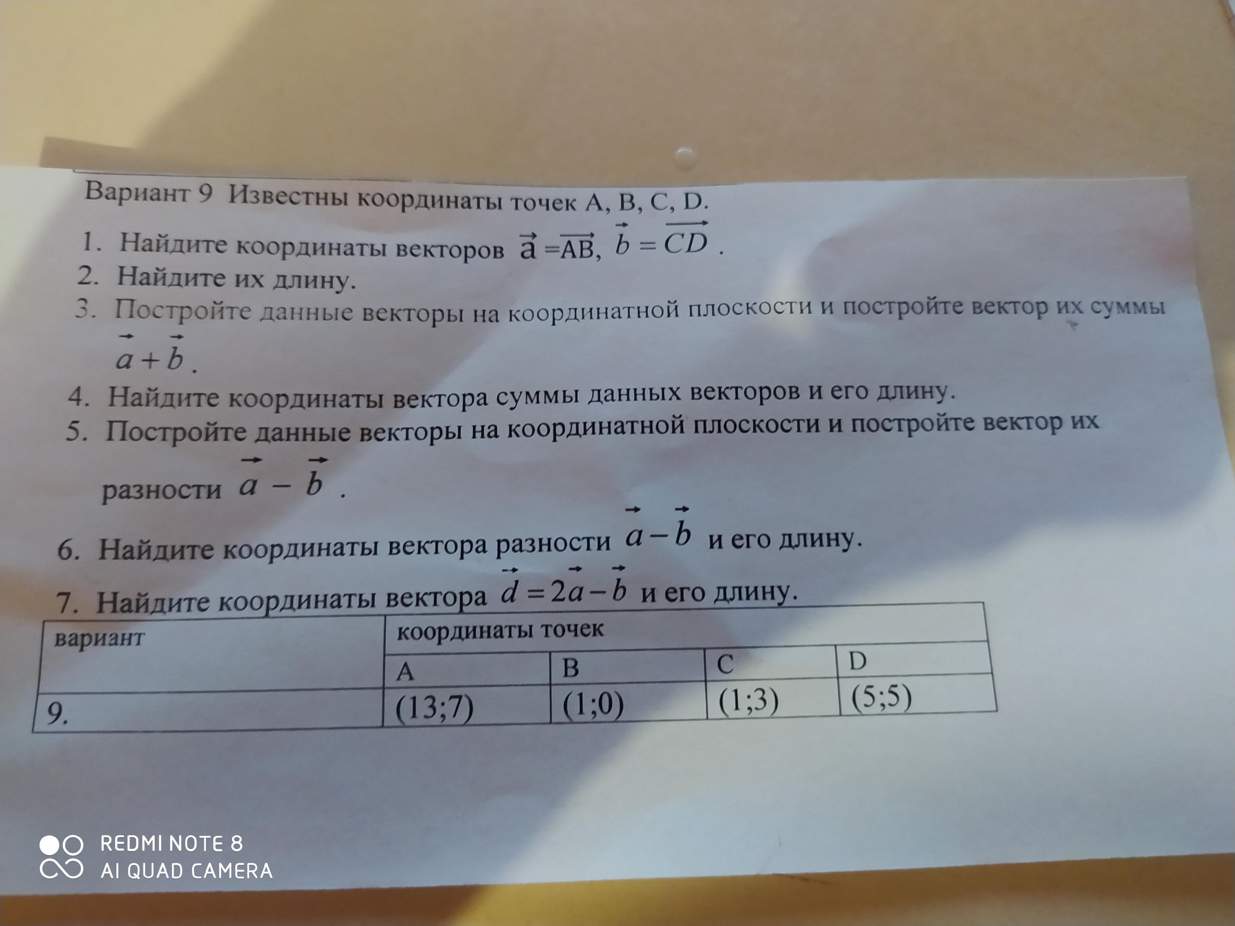 1) А(13;7) , В(1;0) → вектор АВ(1-13;0-7) , АВ(-12;-7) , а(-12;-7).