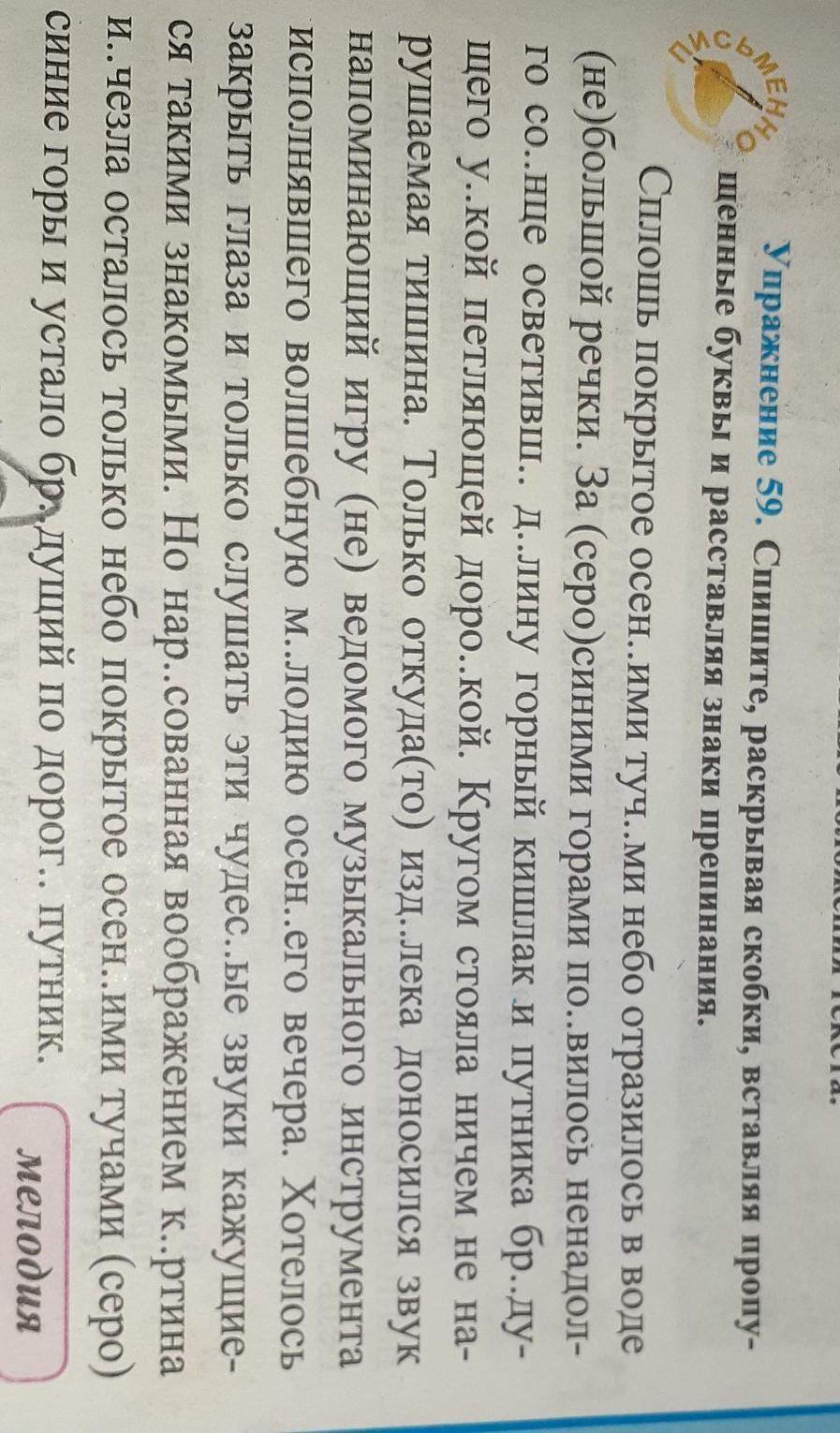 Упражнение 59.Спишите , раскрывая скобки , вставляя пропущенные буквы и раставляя знаки препинания