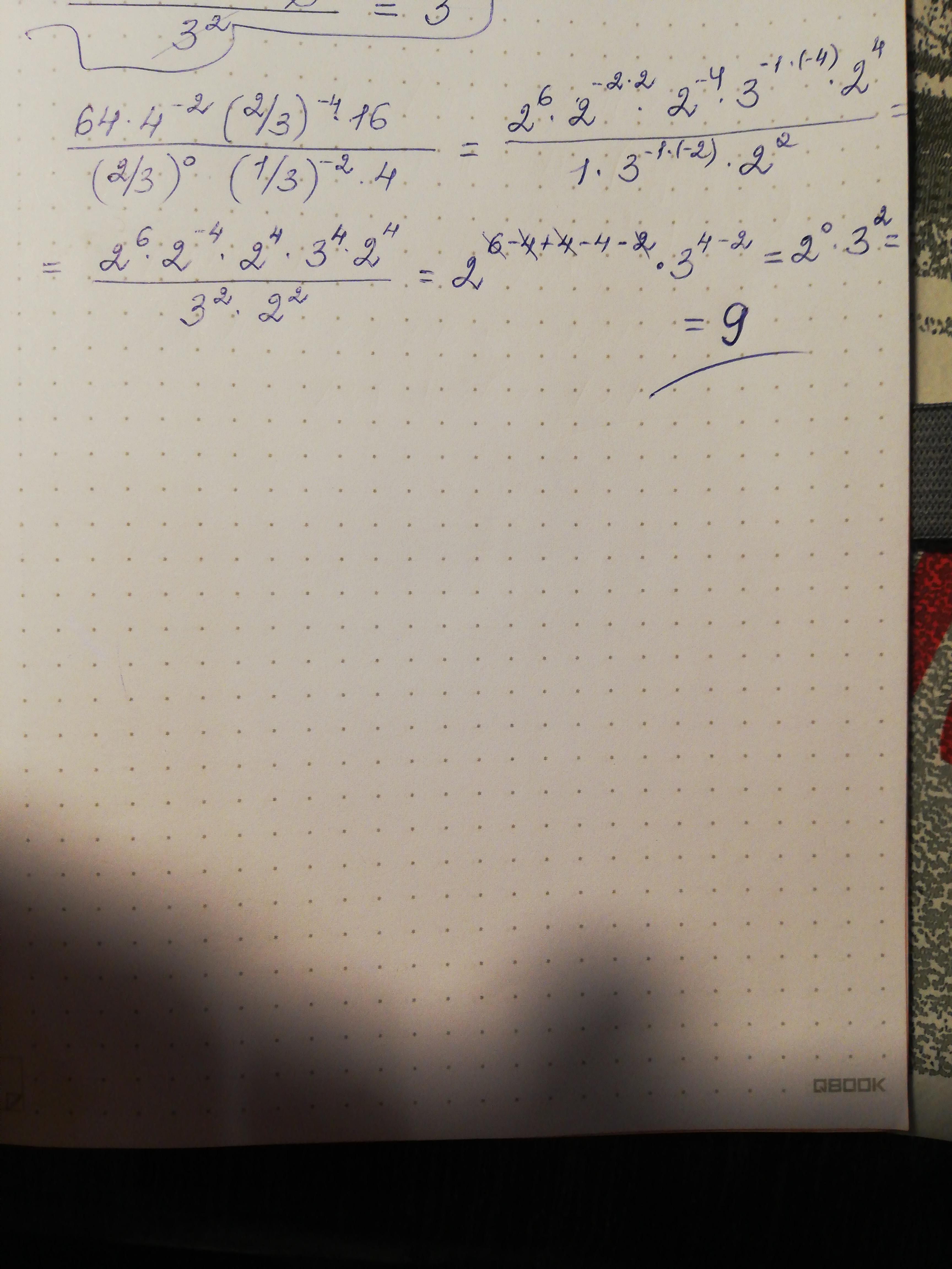Получается 64 и 4 сокращаются мы их сокращаем, а так же Любое отличное число от нуля выражается в степени 0 равно 1.дальше смотрите на рисунке