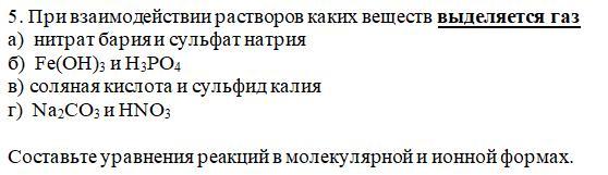 При взаимодействии растворов каких веществ выделяется газ