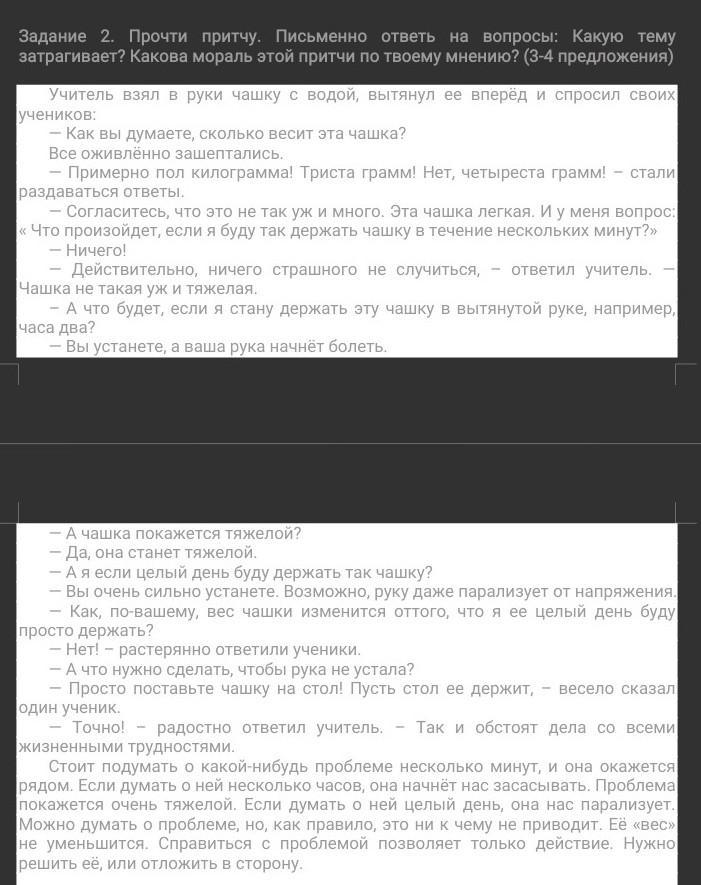 по-моему эта притча должна научить нас не тратить свою жизнь на мысли о проблемах-жизнь слишком коротка для этого. как и эта чашка,наши проблемы при постоянном обдумывании просто "съедят" нас изнутри. мораль в этой притче такая : не стоит думать о проблемах долгое время, чтобы мы жили, а не существовали.