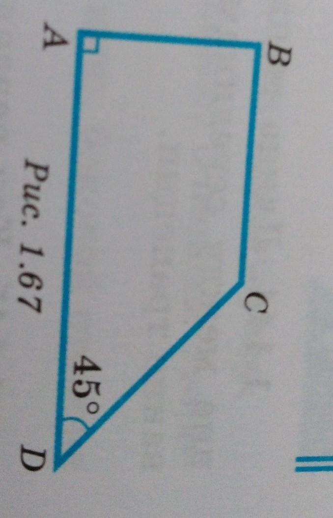 Один угол прямоугольной трапеции равен 45°,а её основание - 10см и 15см. Найдите меньшую боковую сторону трапеции (рис. 1.67)