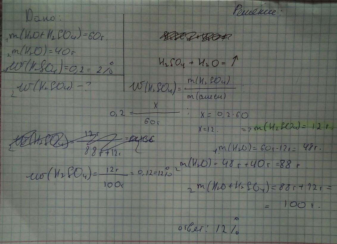 Вычислите массовую долю серной кислоты в новом
