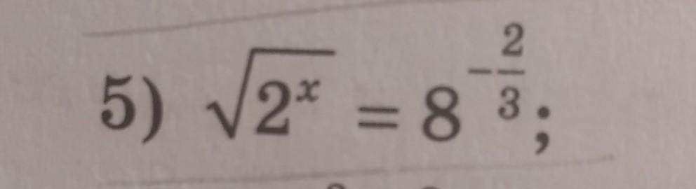 3)\sqrt{2^{x}}=8^{-\frac{2}{3}}\\\\2^{\frac{x}{2}}=(2^{3})^{-\frac{2}{3}}\\\\2^{\frac{x}{2}}=2^{-2}\\\\\frac{x}{2}=-2\\\\x=-4\\\\Otvet:\boxed{-4}