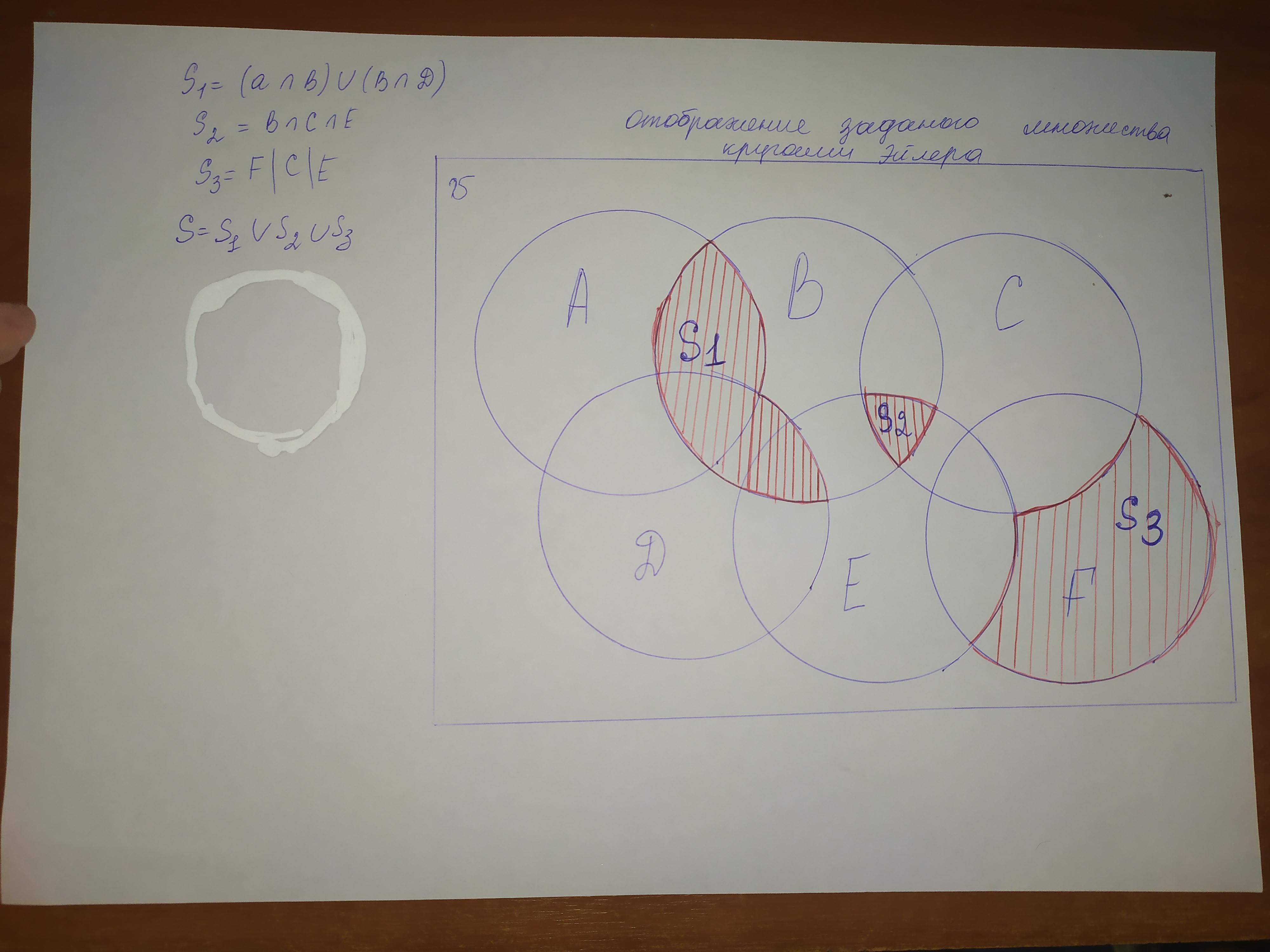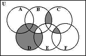 ДАЮ 50 баллов +, помогите! Пусть элементами множеств являются точки кругов A, B, C, D, E, F, а