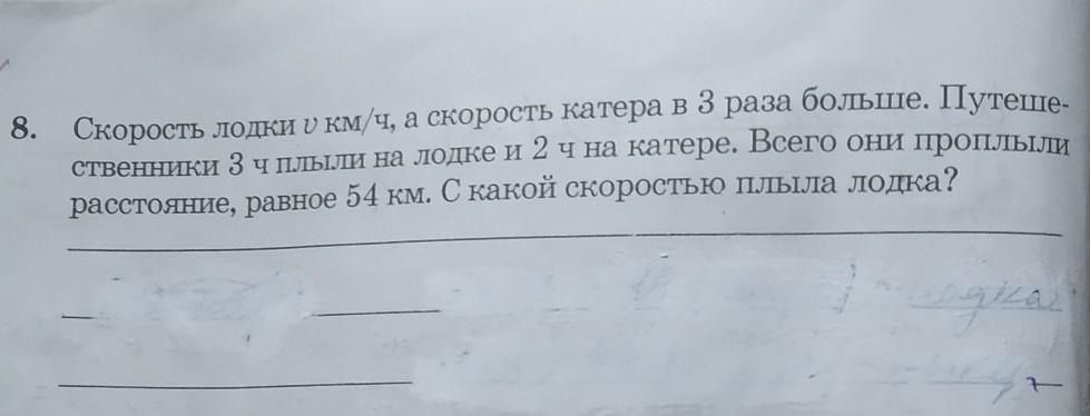 3ч плыли на лодке, значит проплыли км., 2ч плыли на катере, значит проплыли