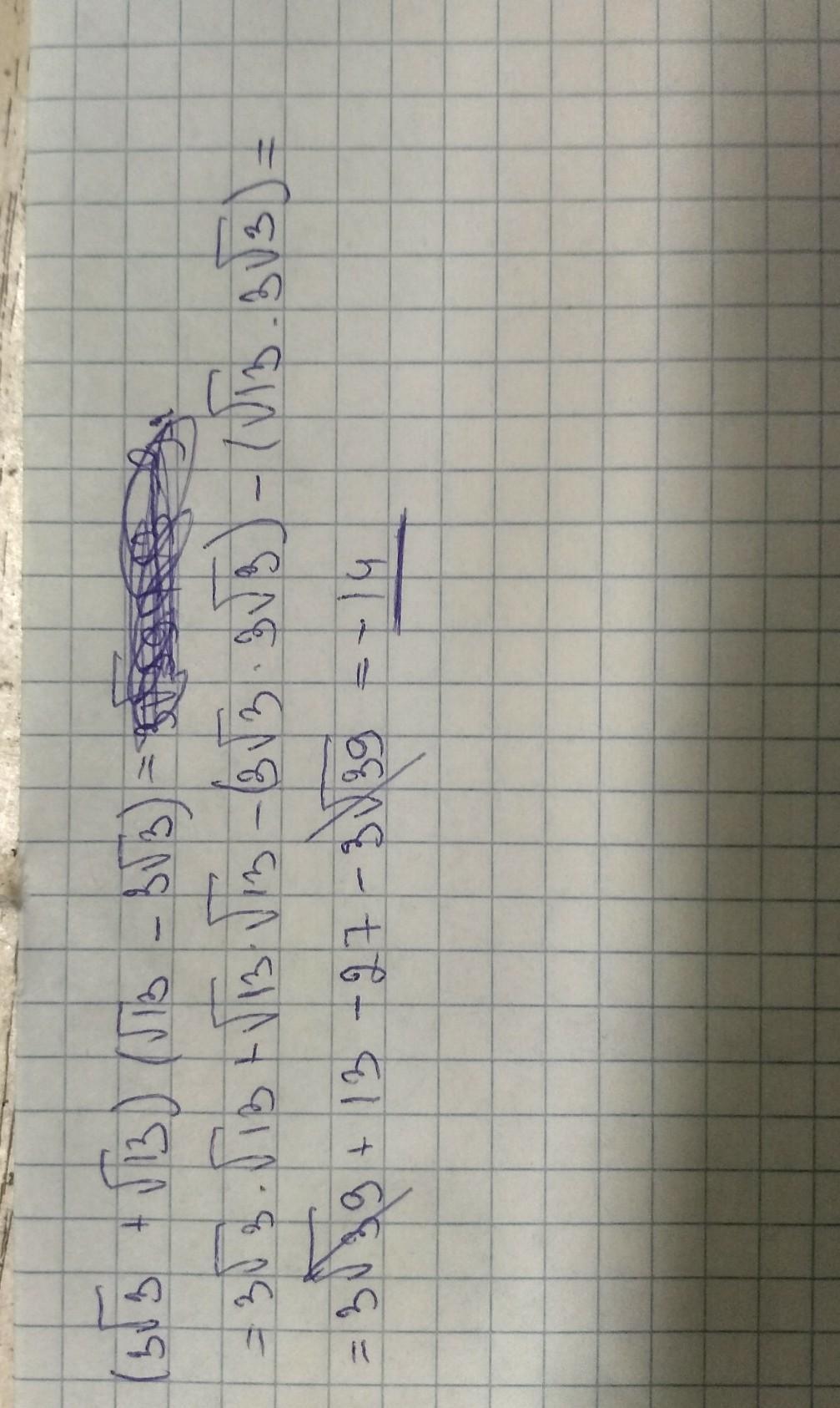 (3√3+√13)(√13-3√3) это развёрнутая форма разности квадратов (формула: а²-b²=(a+b)(a-b) )