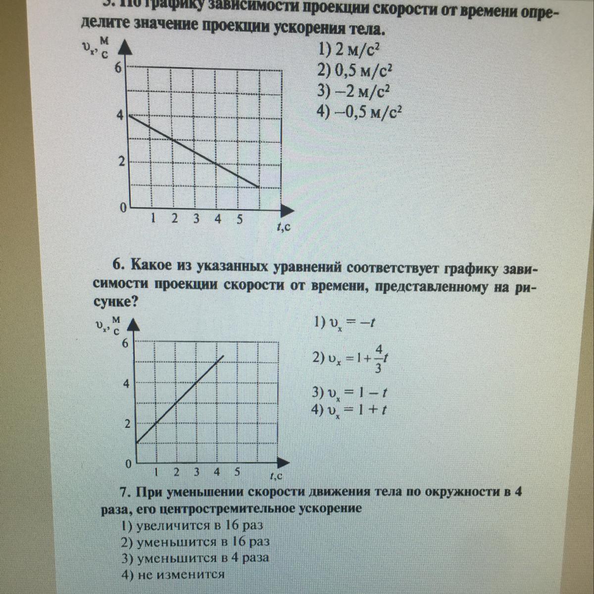 5.Ответ:4),так как скорость уменьшатся,значит уже минус,а за 1 секунду скорость уменьшается на 0,5 м/с
