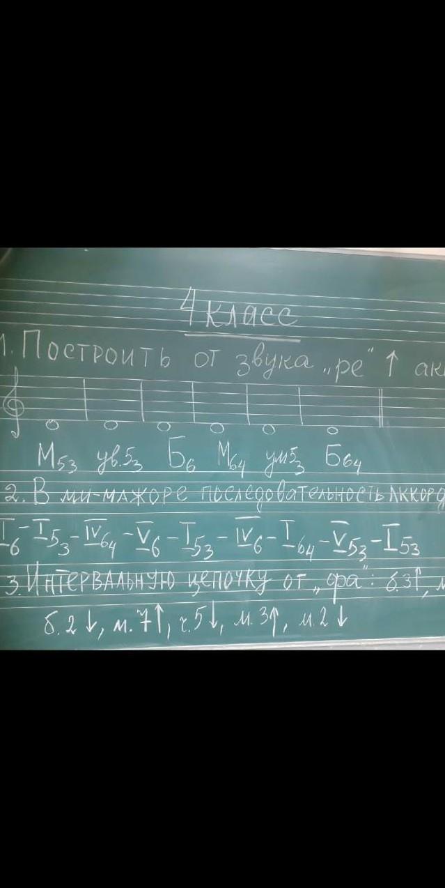 1.Построить от звука "ре"вверх аккорды М5,3,УВ5,3,Б6,М6,4,УМ5,3,Б6,4