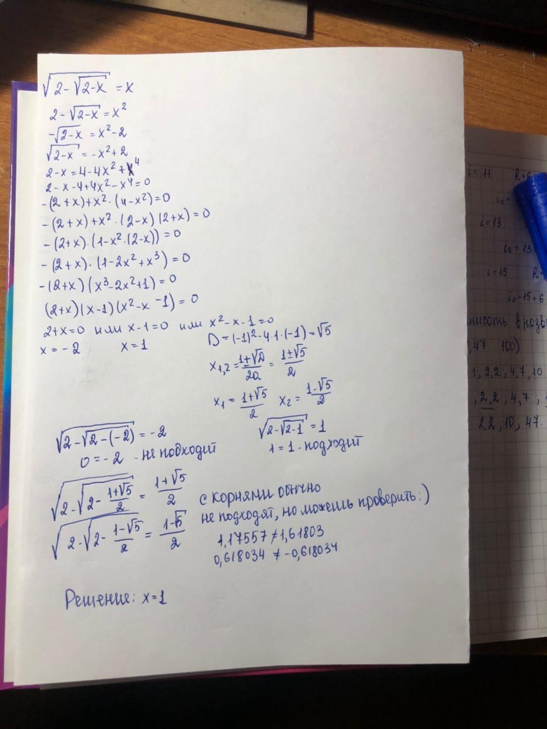 В подсказках написано, что мы могли сделать замену sqrt(2-x)= y и решить систему