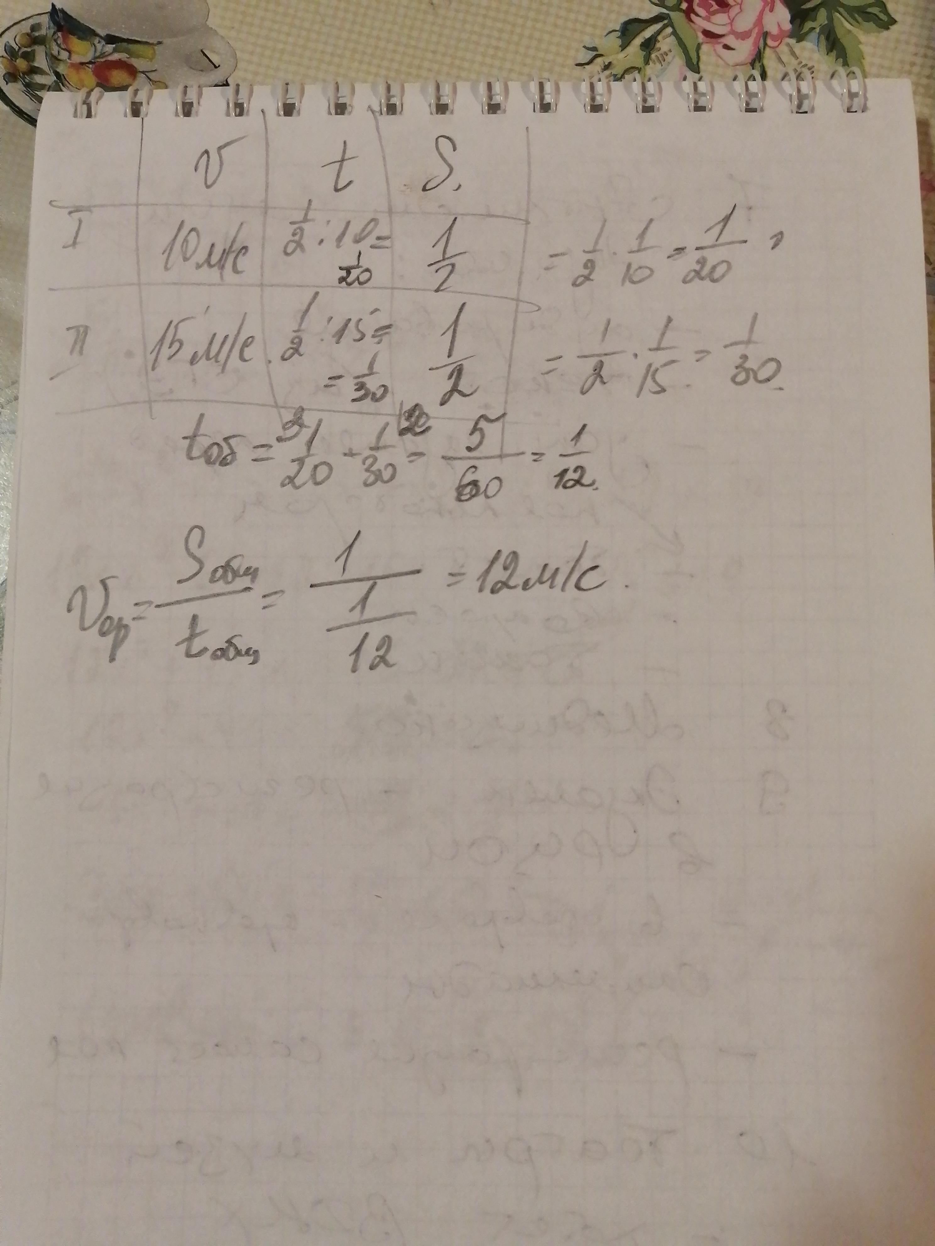 скоростью 10 м/с, а вторую половину со скоростью 15 м/с.