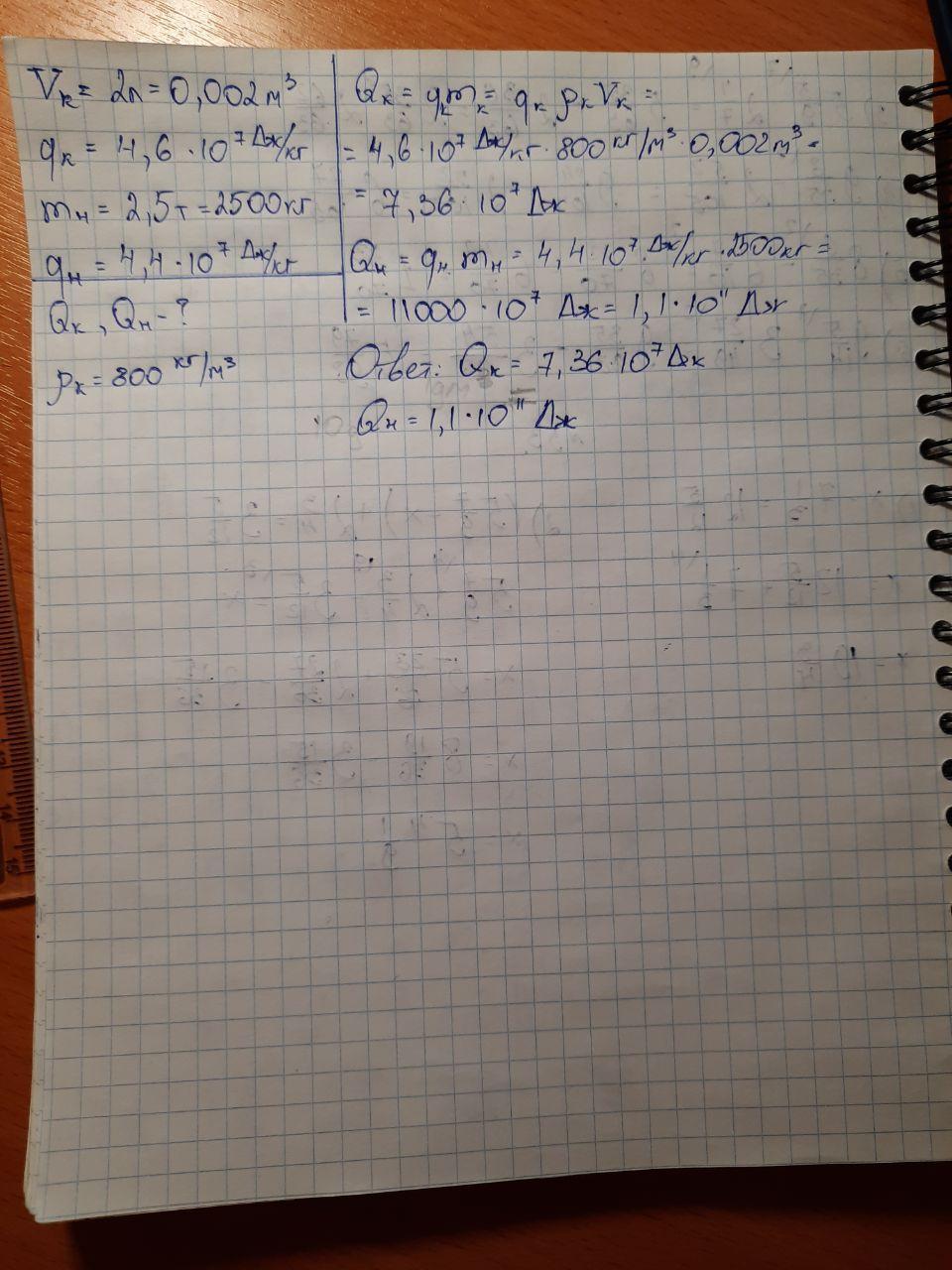 Сколько теплоты выделится при полном сгорании керосина объем которого равен 2 л нефти масса которой 2,5 т СРОЧНО
