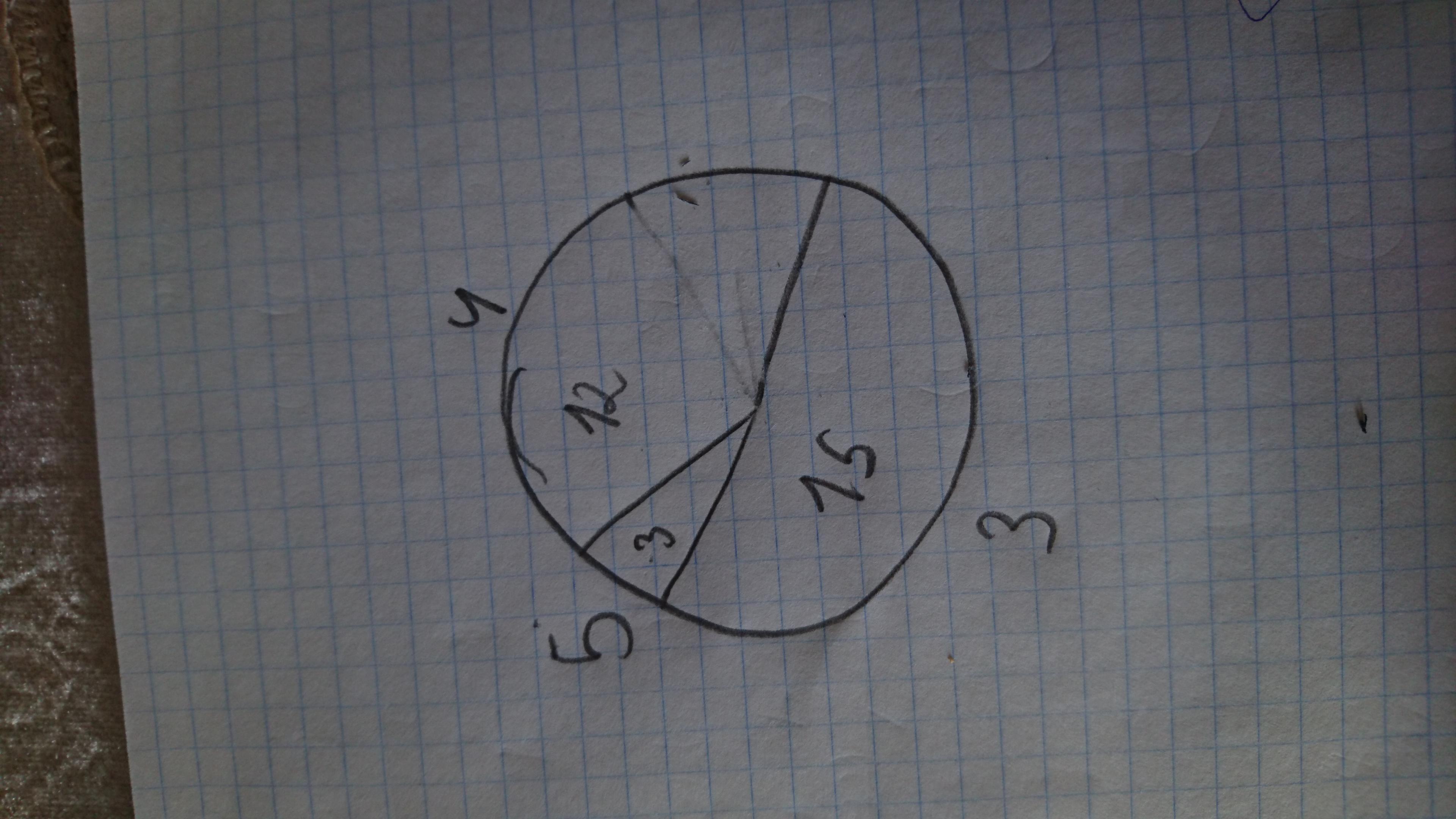 Постройте круговую диаграмму, отражающую результаты выполнения контрольной работы по русскому в 7 классе: 5 получили 3 человека, 4 получили 12 человек и 3-15 человек. Помогите прошу....