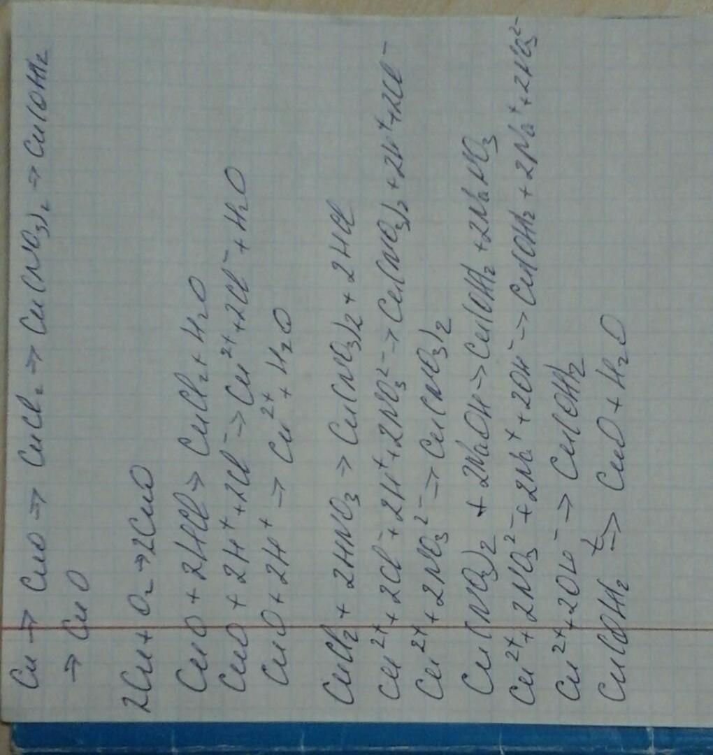 медь → оксид меди(II) → хлорид меди(II) → нитрат меди(II) → гидроксид меди(II) → оксид меди(II).