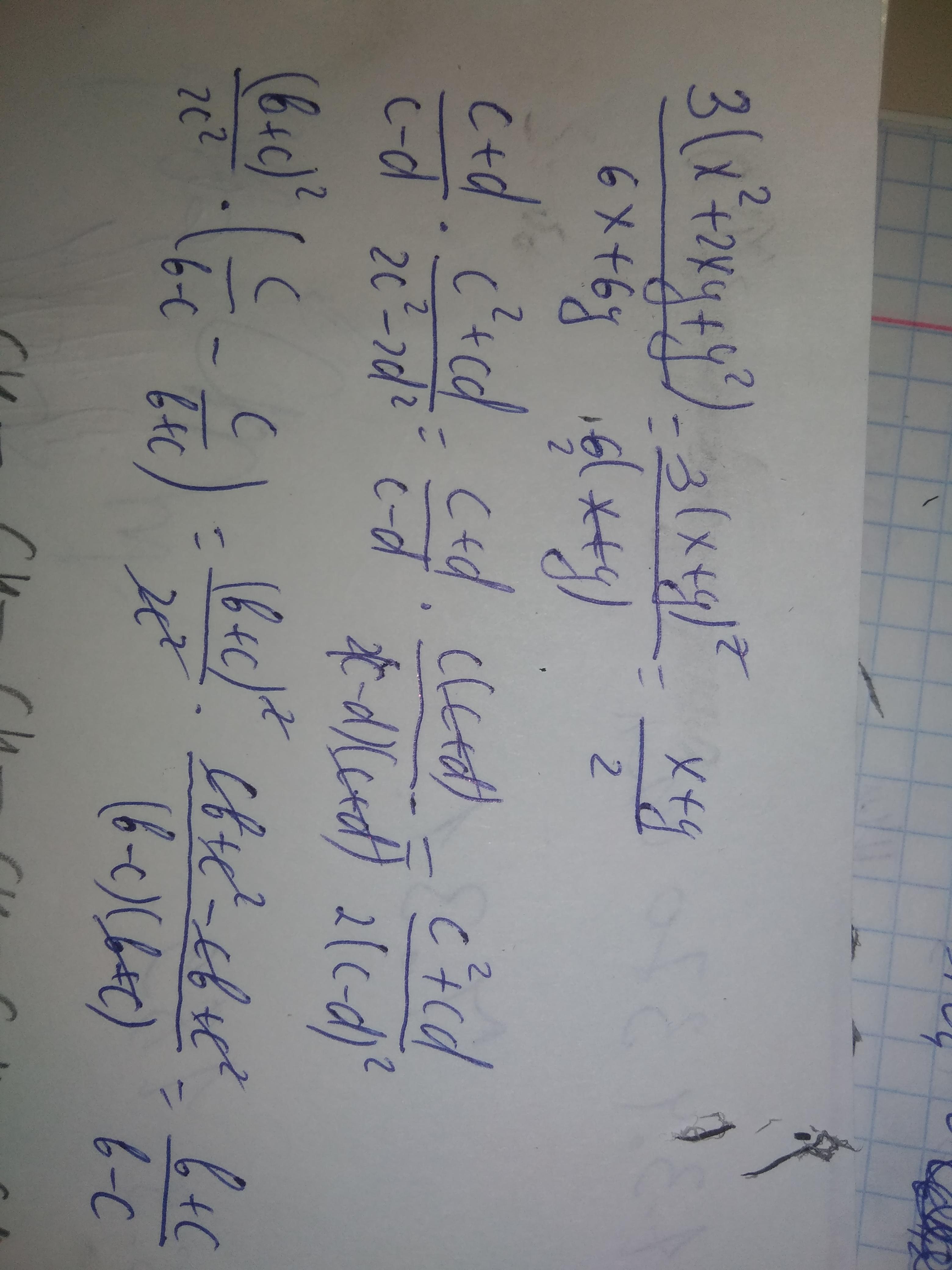 3(x^2+2xy+y^2)/6x+6y=(0.5x^2+xy+0.5y^2)/x+y