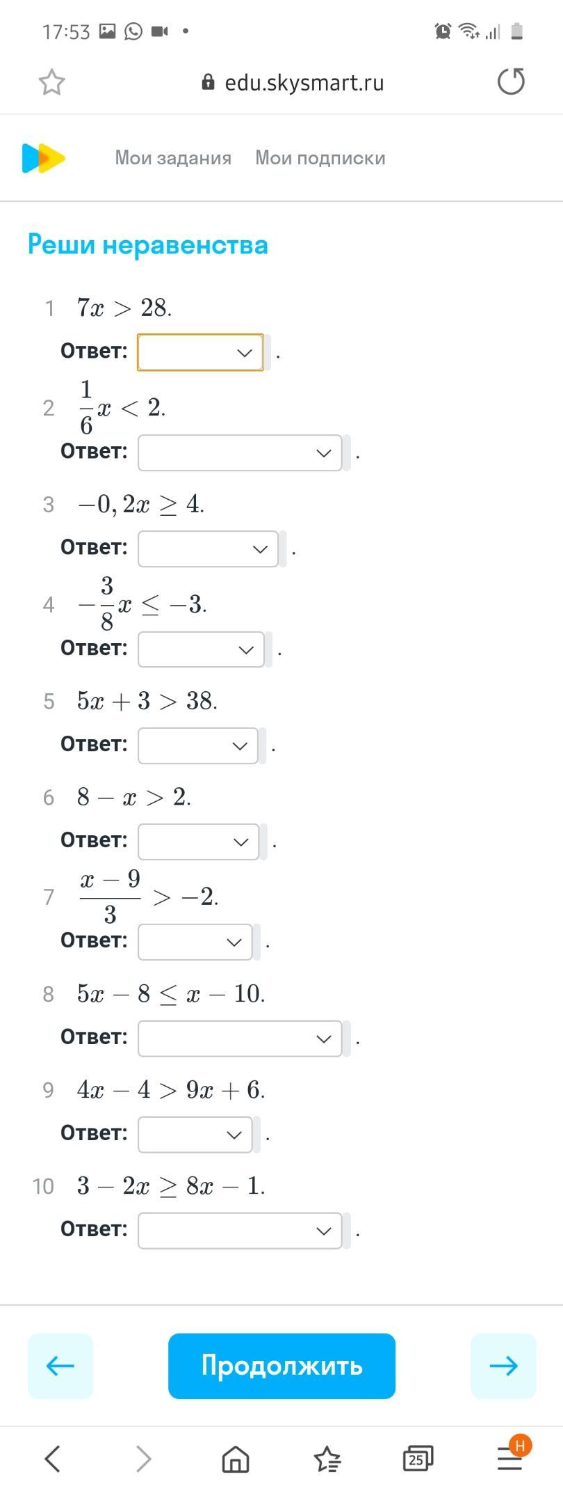 Примечание: при делении и умножении неравенства на -1 знак больше-меньше меняется на противоположный.