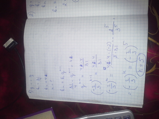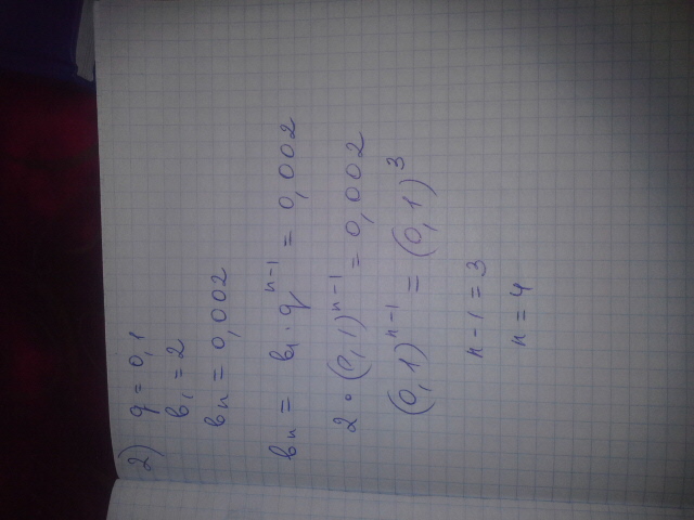 ДРУЗЬЯ!!!!!заранее СПАСИБОО {Bn}-геометрическая прогрессия. Найти n 1) g=-23,b1=814,bn=42) g=0,1,b1=2,bn=0,002