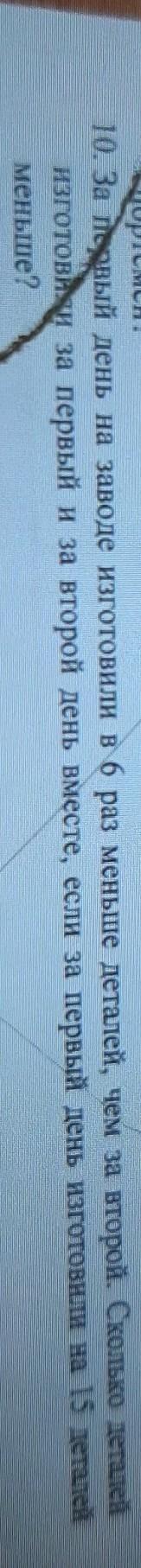 за первый день на заводе изготовили 6 раз меньше деталей чем второй Сколько деталей изготовили за 1 день и за второй день месте если за первый день изготовили на 15 деталей меньше