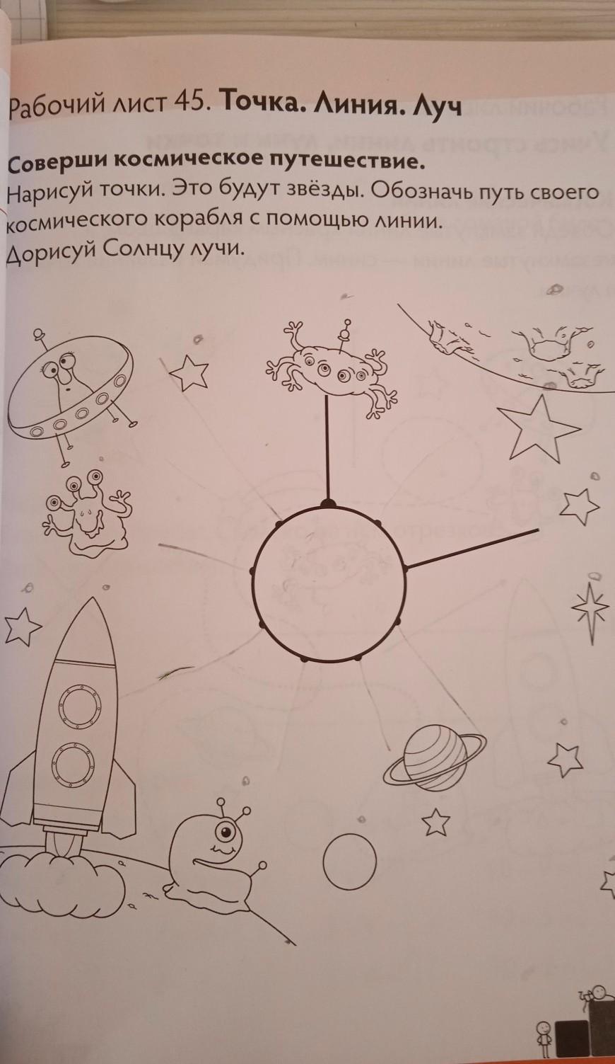 нарисуй точки это будут звёзды. Обозначь путь своего космического корабля с помощью линии первый класс